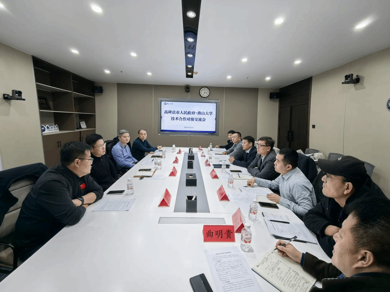12月12日,高碑店市人民政府代表团一行4人到访燕山大学,双方围绕机械设计加工制造等领域的校地企合作、研发中心共建等议题进行深入交流,探讨产学研协同创新与高质量发展路径。座谈会由学校科技产业促进中心主任郝连旺主持。